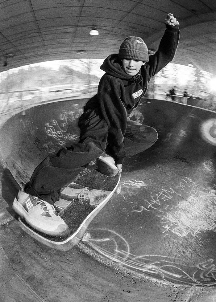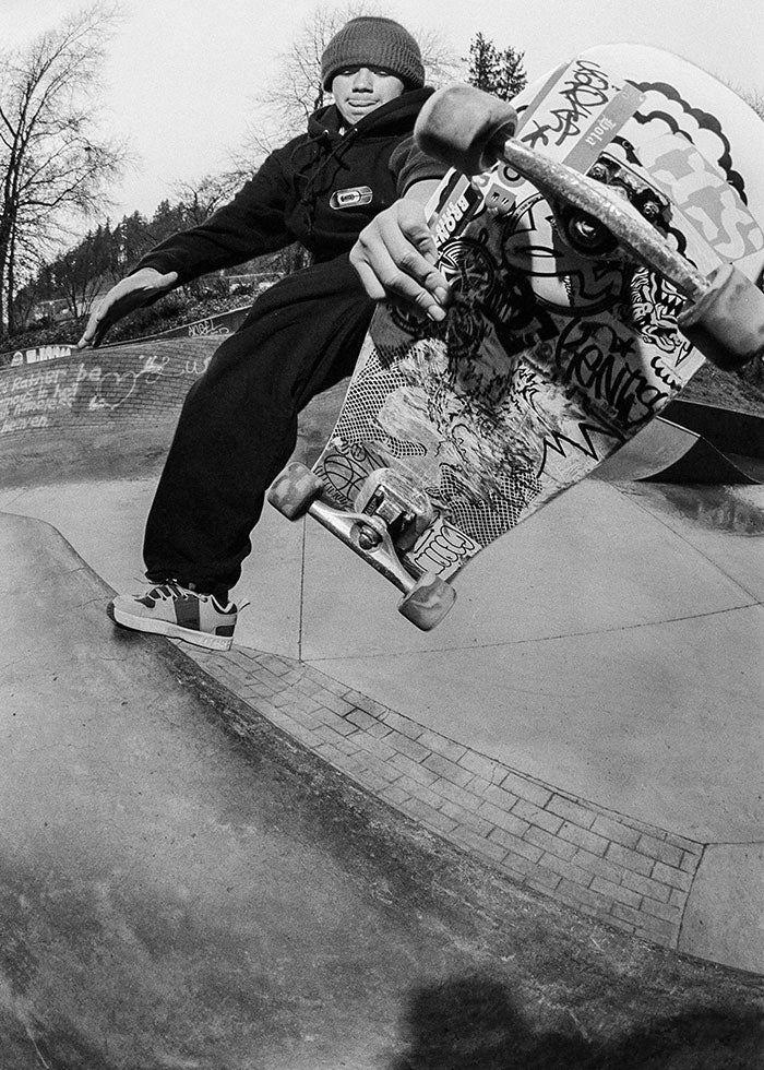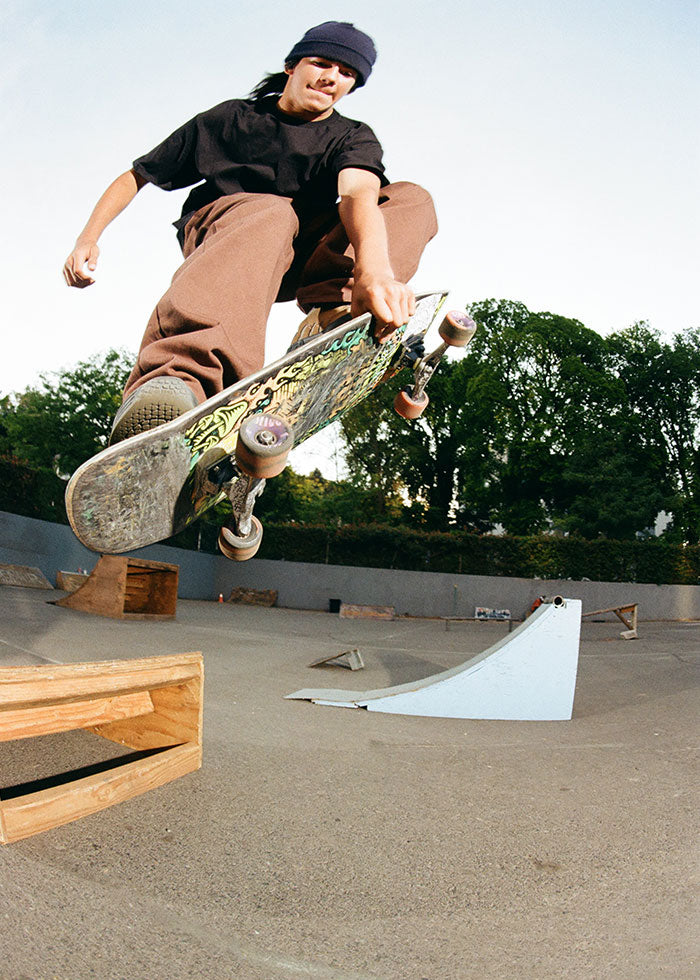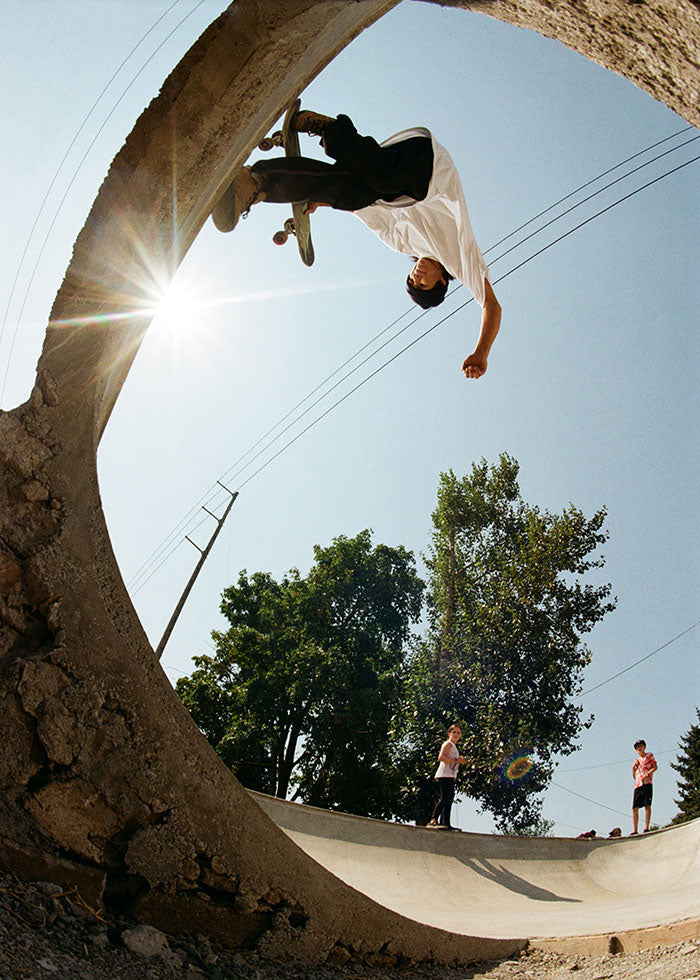 Aiden Caruth; this crail sliding, train hopping, park skating ripper joined CCS as a teenager, and has a classic style that got him noticed by Santa Cruz and OJ Wheels.